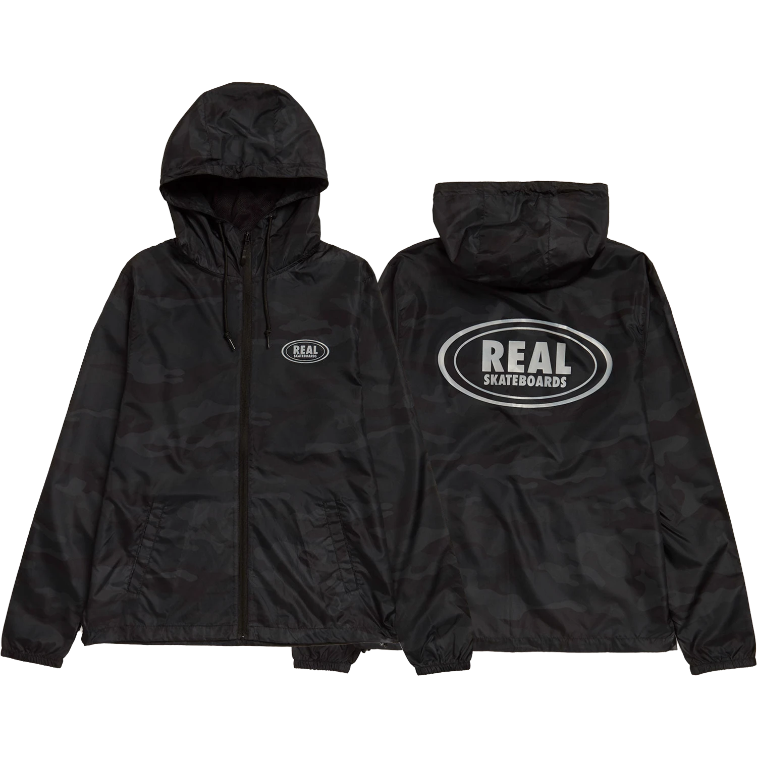 REAL OVAL HOODED WINDBREAKER M-BLK CAMO/GREY